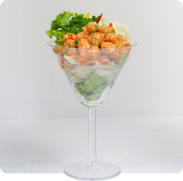 Crumbed and fried chicken cubes tossed in dynamite sauce, lettuce & Sliced cheese